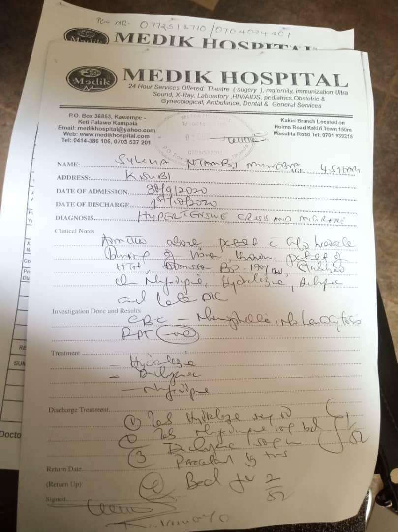 Kabega yagambye nti gw'akikiridde ali mu ddwaliro lya Medik Hospital okuva October 1.